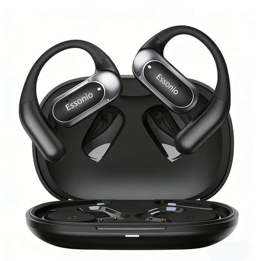 Essonio Open-Ear Headphones, True Wireless Bluetooth Earphones with Microphone, Low Latency Earhook Earbuds with 30 Hours of Playtime, Fast Charging, IP45 Water-Resistant, Bluetooth5.1