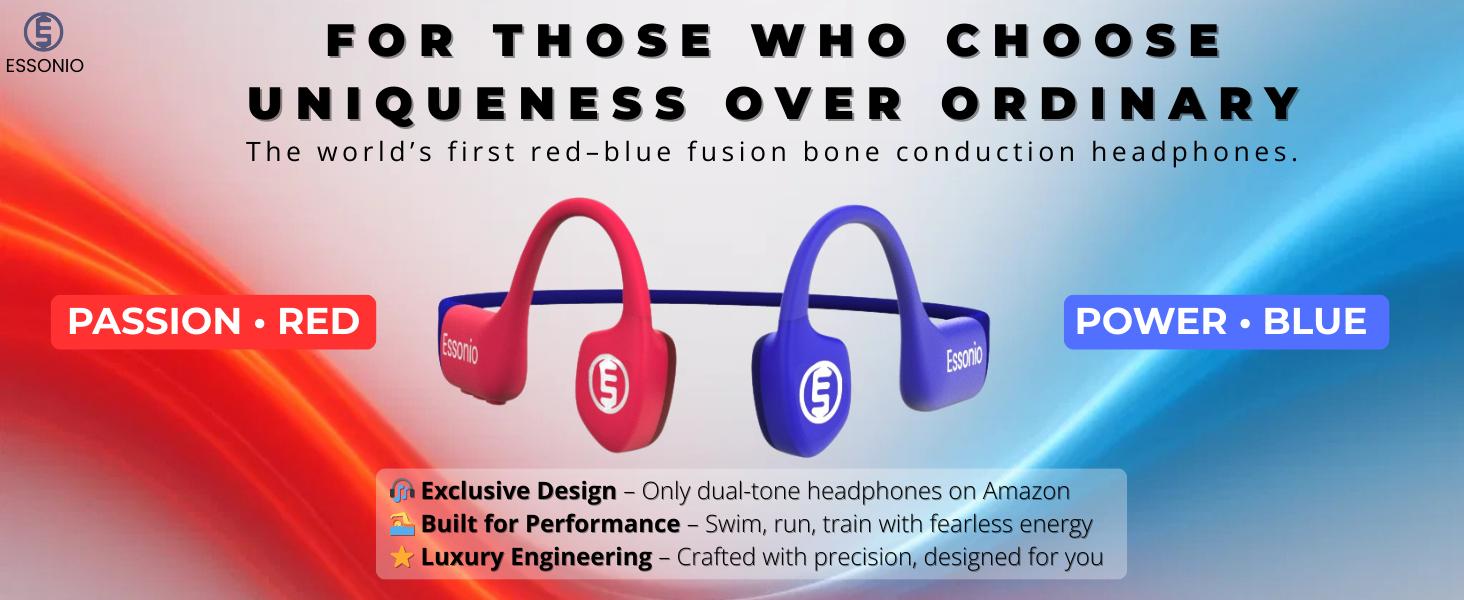 - 【A Singular Design, Beyond the Ordinary】 An audacious red–blue fusion, unseen in the world of bone conduction headphones. Created exclusively for those who dare to stand apart, never content with the commonplace.